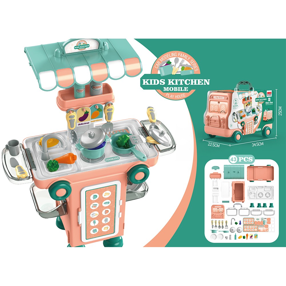 BESC:TRUCK AND TABLES - COOKING SET AGE INFO:3+ BATTERY INFO:/ PACKAGE:TRUCK BOX WITH PAPER CARD PACKAGE SIZE:34.5*22.5*25 PCS/CTN:12 CARTON DIMNSION:89 35 81 CBM:0.252315 MOQ:60PCS CERTIFICATE:EN71,10P,PAHS