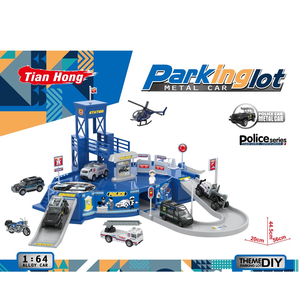 DESC:POLICE PARKING LOT,WITH FREE WHEEL DIE CAST AGE INFO:3+ BATTERY INFO:/ PACKAGE:WINDOW BOX PACKAGE SIZE:45.5*8.8*31.4 PCS/CTN:24 CARTON DIMENSION:98*48*78 CBM:0.367 MOQ:120PCS CERTIFICATE:BIS / EN71 / 10P / PAHS / CD / 3C/BSCI