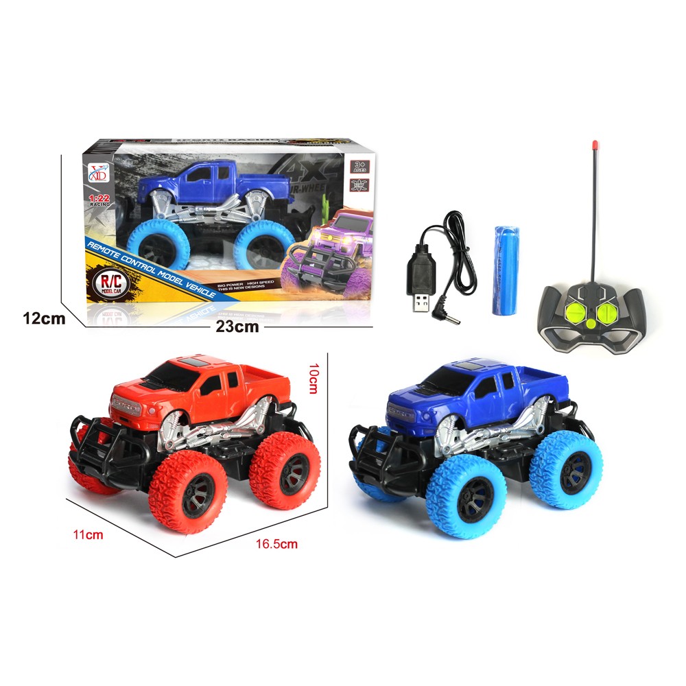 BESC:R/C 1:22 FOUR FUNCTION OFF-ROAD VEHICLE,2 COLOR ASSORTED AGE INFO:3+ BATTERY INFO:CAR:1*3.7v RECHARGEABLE BATTERIES AND USB CHARGING LINE INCLUDED REMOTE CONTROL:2*AA NOT INCLUDED PACKAGE:WINDOW BOX PACKAGE SIZE:23*12*15 PCS/CTN:72 CARTON DIMENSION:72 37 95 CBM:0.25308 MOQ:360PCS CERTIFICATE:EN71/62115/60825/8P
