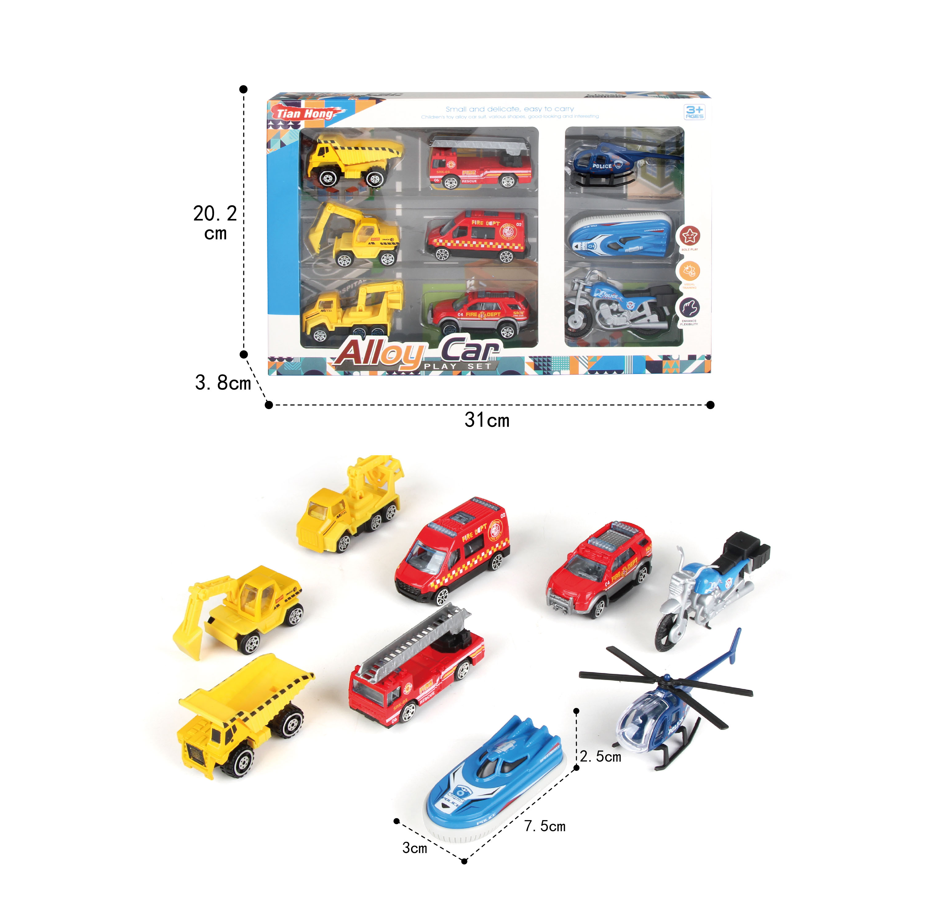DESC:9PCS FREE WHEEL DIE CAST CAR AGE INFO:3+ BATTERY INFO:/ PACKAGE:WINDOW BOX PACKAGE SIZE:31*3.8*20.2 PCS/CTN:72 CARTON DIMENSION:84*33.5*77 CBM:0.217 MOQ:360PCS CERTIFICATE:BIS / EN71 / 10P / PAHS / CD / 3C/BSCI
