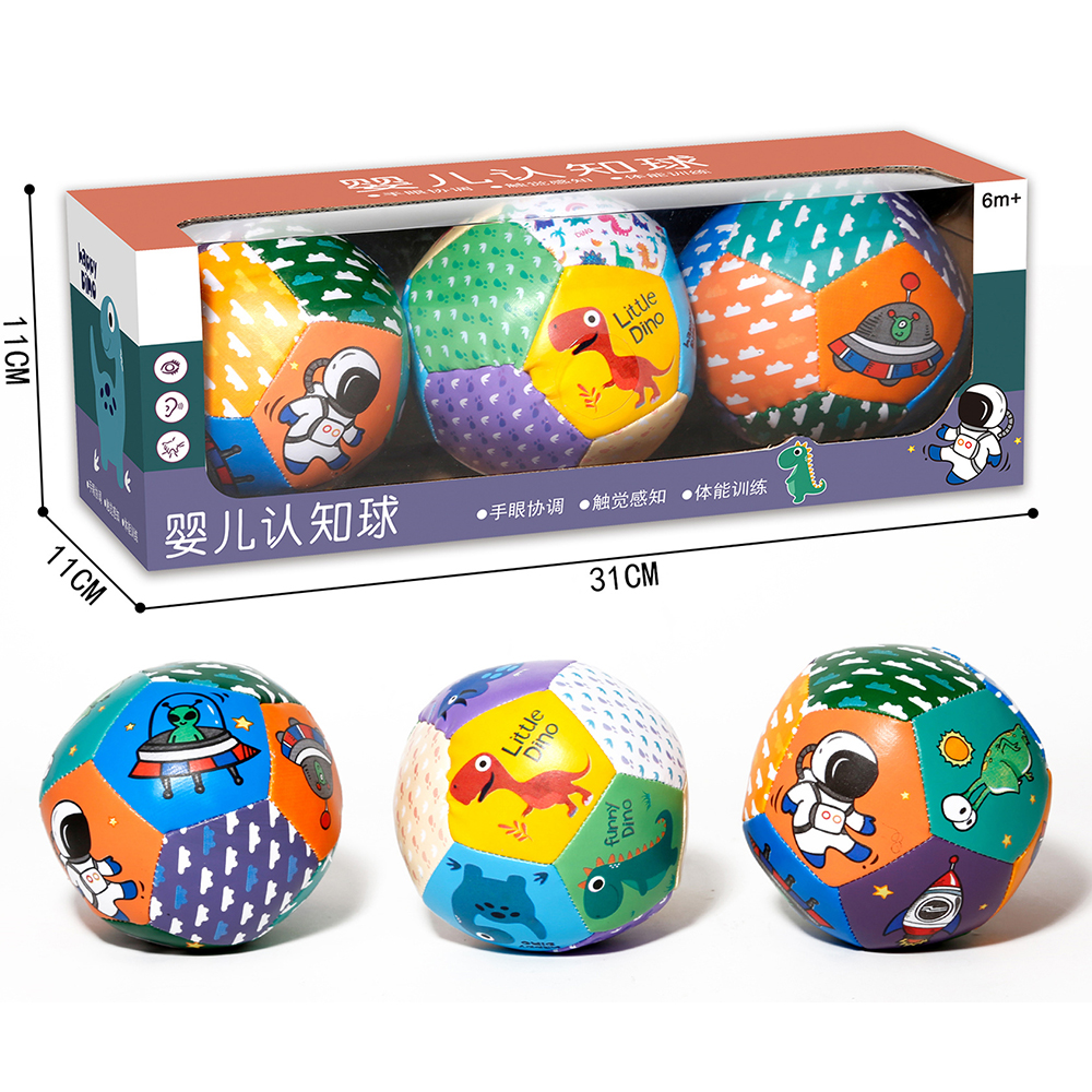 DESC:3PCS 4 INCH LEATHER STUFFED BALL-SPACE AGE INFO:6M+ BATTERY INFO:/ PACKAGE:WINDOW BOX PACKAGE SIZE:31.3*11*11 PCS/CTN:72 CARTON DIMENSION:100 35 92 CBM:0.322 MOQ:360PCS CERTIFICATE:EN71,HR4040,7P,BIS