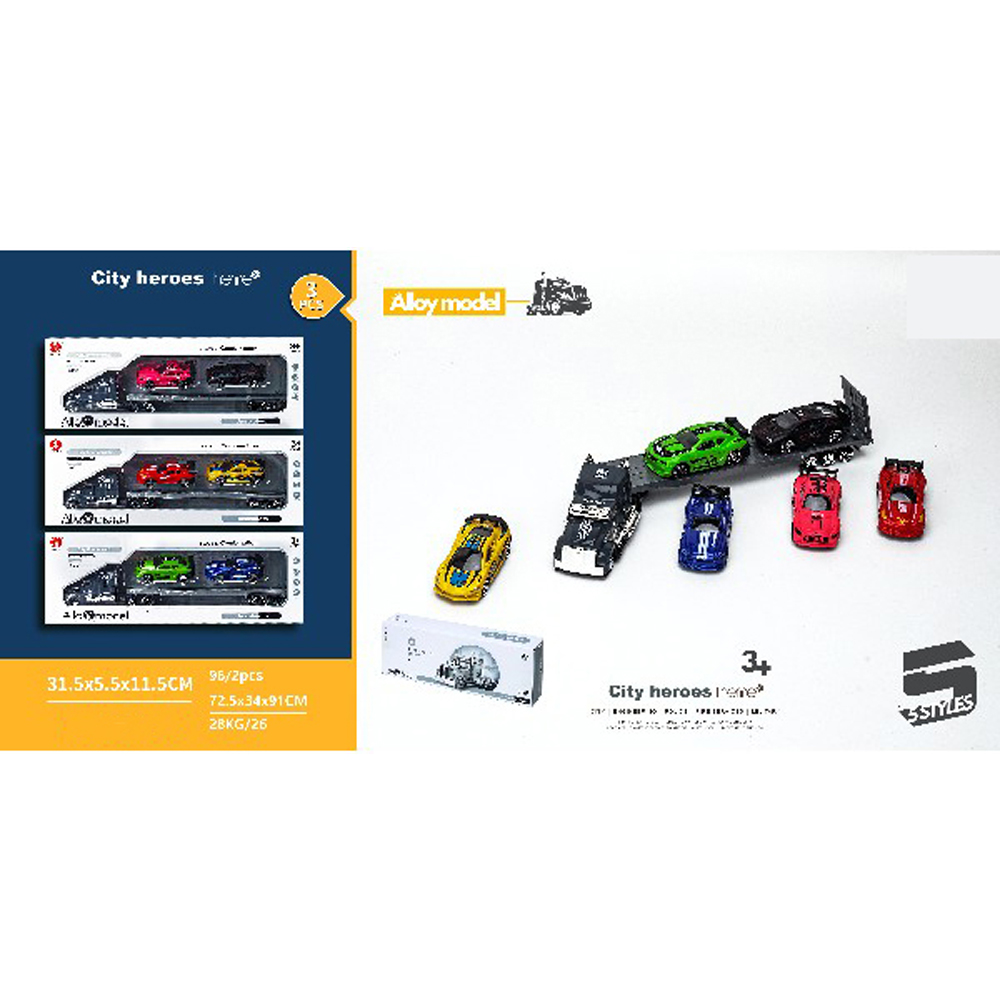 DESC:1:58 CITY THEMED TRAILER SET WITH 2PCS FREE-WHEEL DIECAST CAR,3 ASSORTED