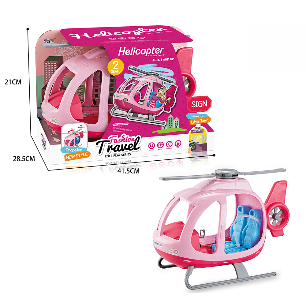 DESC:B/O FASHION DOLL HELICOPTER,WITH SOUND AGE INFO:3+ BATTERY INFO:3*AG13 INCLUDING PACKAGE:DISPLAY BOX PACKAGE SIZE:41.5*28.5*21 PCS/CTN:15 CARTON DIMENSION:87 41.3 105 CBM:0.3772755 MOQ:75 CERTIFICATE:EN62115,7P,EN71-1-2-3
