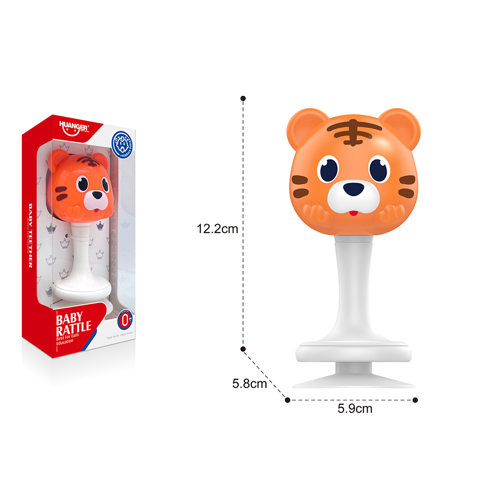 DESC:BABY TOYS-TIGER SAND HAMMER AGE INFO:0M+ BATTERY INFO:/ PACKAGE:WINDOW BOX PACKAGE SIZE:7.8*6*17.2 PCS/CTN:72 CARTON DIMENSION:48.5*36*39 CBM:0.068 MOQ:360PCS CERTIFICATE:ASTM/HR4040/EN71/7P/EN62115/(CPC/CE)CERTIFICATE/ISO90/GCC