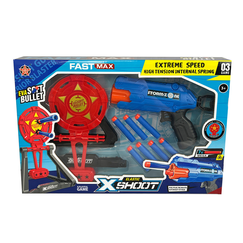 BESC:SOFT BULLET GUN SET,2 COLOR ASSORTED AGE INFO:3+ BATTERY:/ PACKAGE:WINDOW BOX PACKAGE SIZE:43*6*28.5 PCS/CTN:36 CARTON DIMENSION:88*44*68 CBM:0.263 MOQ:180PCS CERTIFICATE:10P、CPC、HR4040、ASTM、CE、EN71、CD、PAHS、GCC