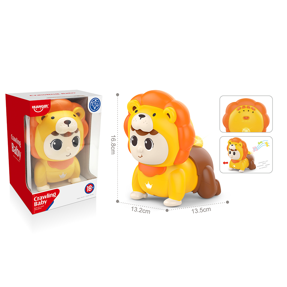 DESC:B/O INTELECTUAL CRAWLING BABY,WITH SOUND/LIGHT AGE INFO:18M+ BATTERY INFO:3*AA NOT INCLUDING PACKAGE:WINDOW BOX PACKAGE SIZE:13.5*13.5*19.5 PCS/CTN:48 CARTON DIMENSION:83.5*44.5*60 CBM:0.223 MOQ:240PCS CERTIFICATE:ASTM/HR4040/EN71/7P/EN62115/(CPC/CE)CERTIFICATE/ISO90/GCC