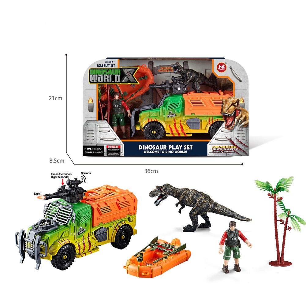 BESC:B/O DINOSAUR SET,OFF-ROAD VEHICLE WITH SOUND/LIGHT AGE INFO:3+ BATTERY INFO:3*AG13 INCLUDED PACKAGE:WINDOW BOX PACKAGE SIZE:36*8.5*21 PCS/CTN:48 CARTON DIMNSION:105 39 89 CBM:0.364455 MOQ:240PCS CERTIFICATE:AS/NZS ISO 8124,GCC,EN71,ASTM,HR4040,10P PAHS,EN62115,CPC