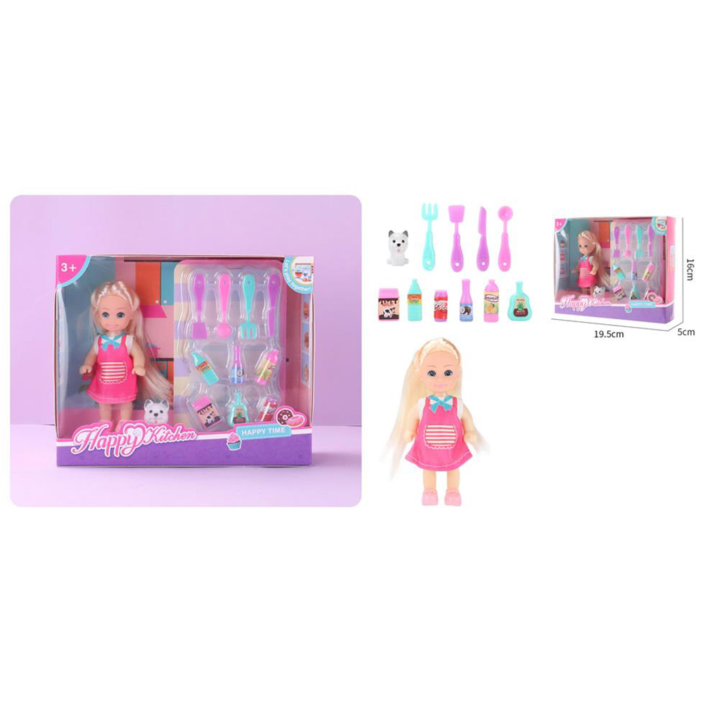 DESC:4.5 INCH FASHION DOLL WITH COOKING UTENSILS BATTERY INFO:/ PACKAGE:WINDOW BOX PACKAGE SIZE:19.5*5*16 PCS/CTN:180 CARTON DIMENSION:79*63*69 CBM:0.343 MOQ:900PCS CERTIFICATE:ASTM/HR4040/EN71/7P/EN62115/(CPC/CE)CERTIFICATE/ISO90/GCC