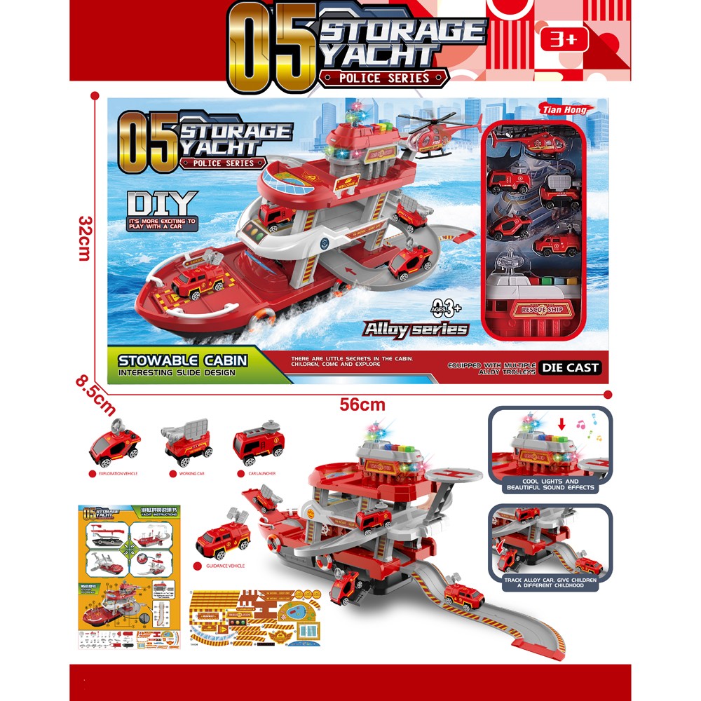 DESC:FIREENGINEYACHT TRACK SET,WITH DIE CAST CAR/HELICOPTER AGE INFO:3+ BATTERY INFO:/ PACKAGE:WINDOW BOX PACKAGE SIZE:56*85*32 PCS/CTN:16 CARTON DIMENSION:66*57*71.5 CBM:0.269 MOQ:80PCS CERTIFICATE:BIS / EN71 / 10P / PAHS / CD / 3C/BSCI