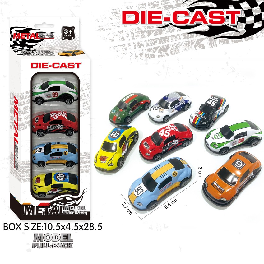 DESC: 4 PCS SHEET METAL PULL BACK SUPER CAR (RANDOM) AGE INFO: 3+ BATTERY INFO: / PACKAGE: WINDOW BOX PACKAGE SIZE: 28.5*10.5*4.5 PCS/CTN: 192 CARTON DIMENSION: 78*44*75 CBM: 0.257 MOQ: 960 PCS CERTIFICATE: EN71/PAHS/CPSIA/ASTM/HR4040