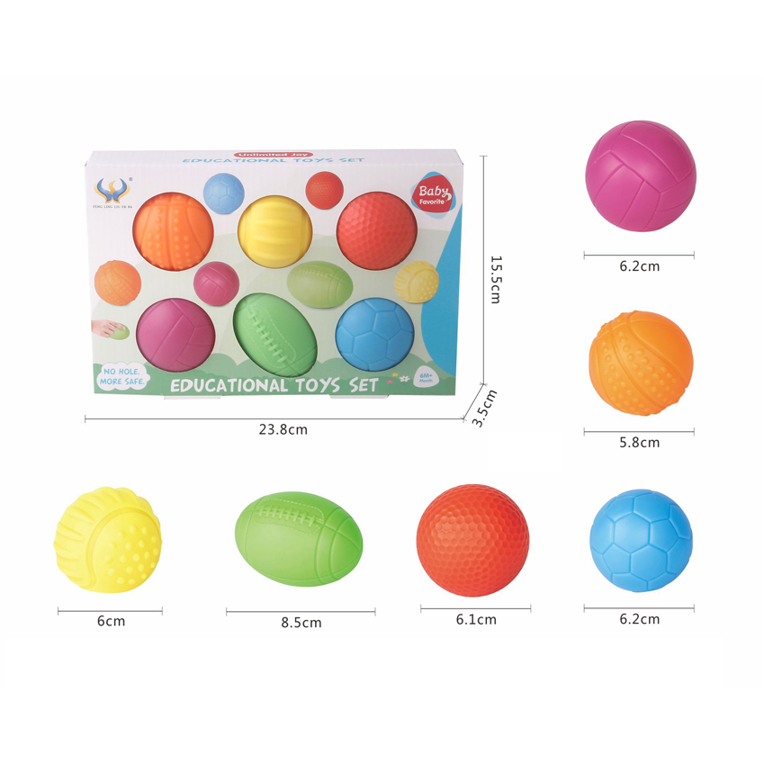DESC: 6 PCS BATH TOYS-PVC BALL AGE INFO: 6M+ BATTERY INFO: / PACKAGE: WINDOW BOX PACKAGE SIZE: 23.8×3.5×15.5 PCS/CTN: 72 CARTON DIMENSION: 75*41.5*70 CBM: 0.218 MOQ: 360 PCS CERTIFICATE: EN71,10P,CD,ASTM,HR4040,BPA,COC,CPC.PASH
