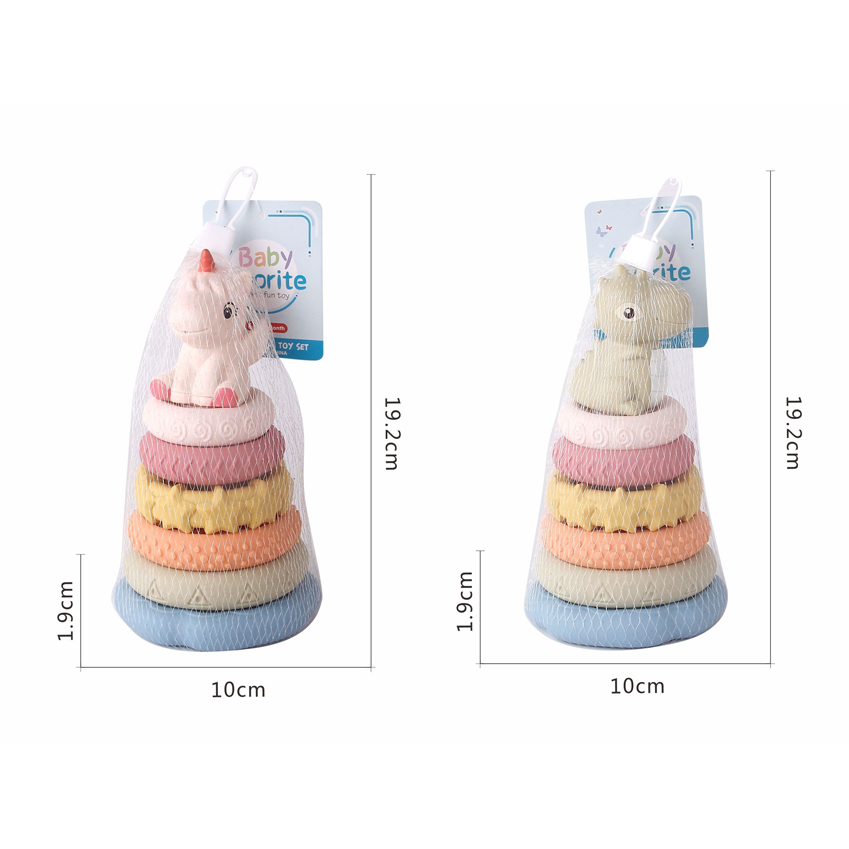 DESC: 7 PCS PVC/WHEAT STRAW BABY INTELLECTUAL STACKING TOY SET. WITH BB SOUND, 2 ASSORTED AGE INFO: 6M+ BATTERY INFO: / PACKAGE: NET BAG WTH HANG TAG PACKAGE SIZE: 10×19.2×1.9 PCS/CTN: 60 CARTON DIMENSION: 53.5*32*66 CBM: 0.113 MOQ: 300 PCS CERTIFICATE: EN71,10P,CD,ASTM,HR4040,BPA,COC,CPC.PASH