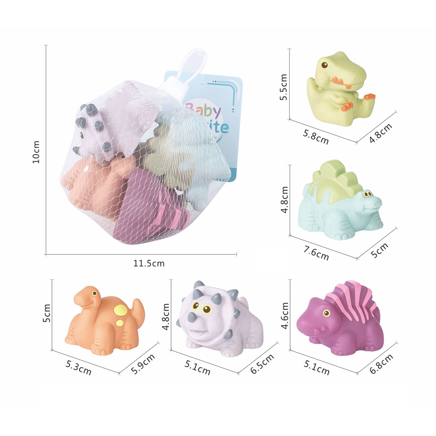 DESC: 5 PCS BATH TOYS-PVC/WHEAT STRAW DINOSAUR SET AGE INFO: 6M+ BATTERY INFO: / PACKAGE: NET BAG WTH HANG TAG PACKAGE SIZE: 11.5×10 PCS/CTN: 120 CARTON DIMENSION: 60*36*61 CBM: 0.132 MOQ: 600 PCS CERTIFICATE: EN71,10P,CD,ASTM,HR4040,BPA,COC,CPC.PASH