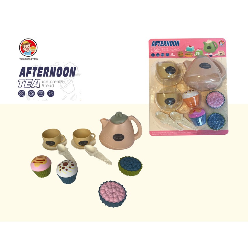 DESC: ROLE PLAYING AFTERNOON TEA AND DESSERT SET AGE INFO: 3+ BATTERY INFO: / PACKAGE: BILSTER CARD PACKAGE SIZE: 25×9×33.5 PCS/CTN: 96 CARTON DIMENSION: 100*50*96 CBM: 0.480 MOQ: 480 PCS CERTIFICATE: EN71, GCC,10P, SPF,CPC, ASTM, HR4040 PAHS